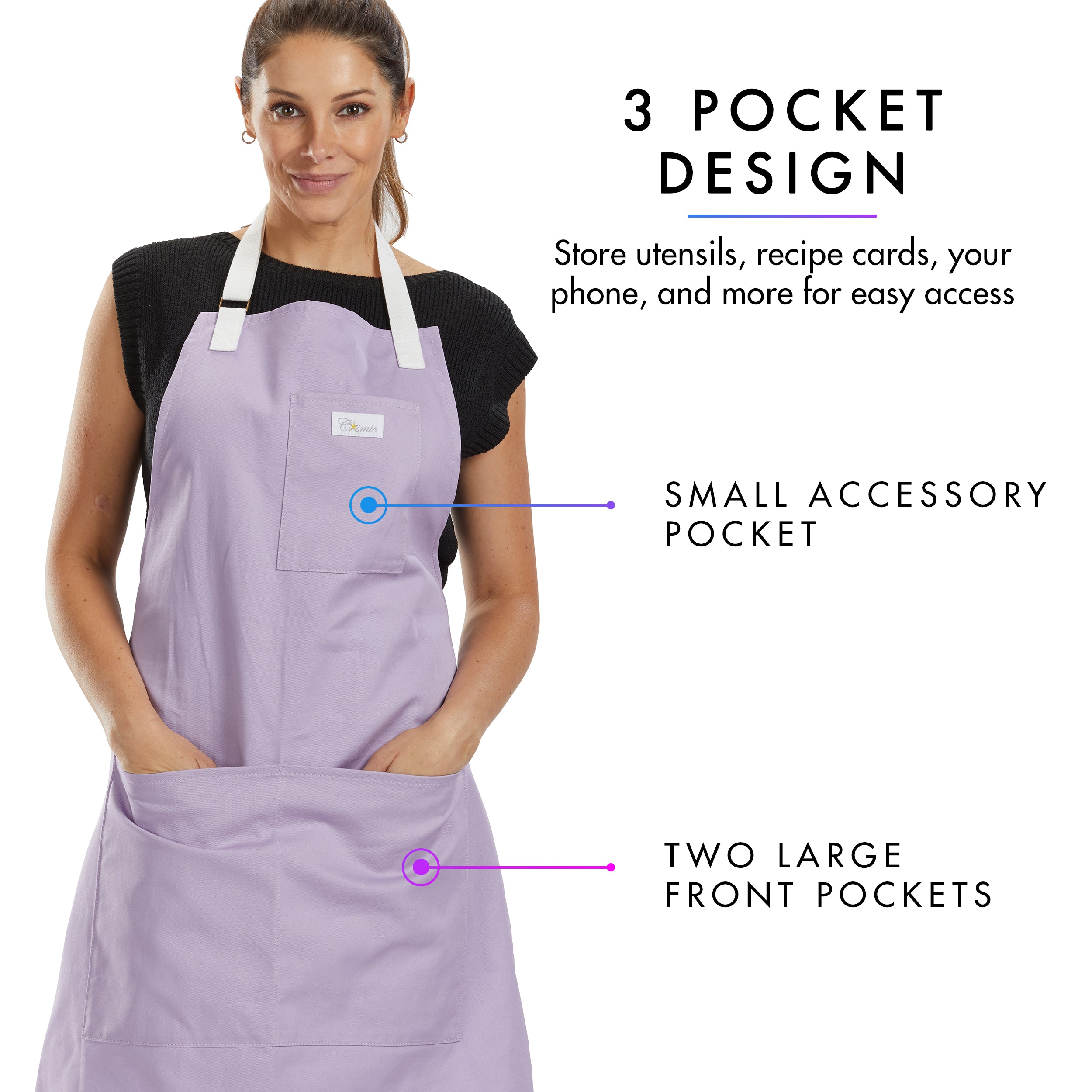 Ample Pockets: With two spacious pockets and one accessory pocket, this cooking apron can store essential utensils, phone and pens so you can focus in the kitchen and whip out your all star dishes